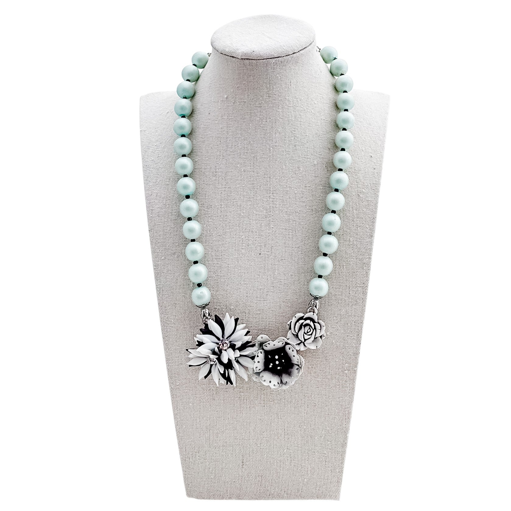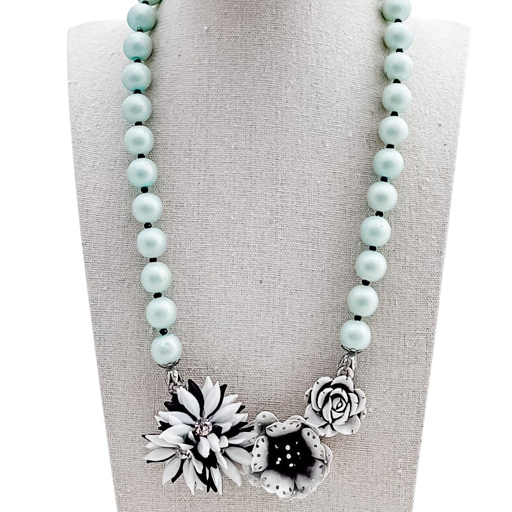 Here is one of my bel monili signature collage necklaces: a statement necklace that combines repurposed vintage costume jewelry components as the focal paired with hand-strung vintage resin beads.