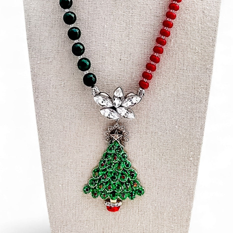 This fun and funky vintage necklace is one of my annual Limited Edition Christmas necklaces, featuring sparkly vintage Christmas baubles, repurposed vintage bits and bobs, and hand-strung glass or gemstone beads.